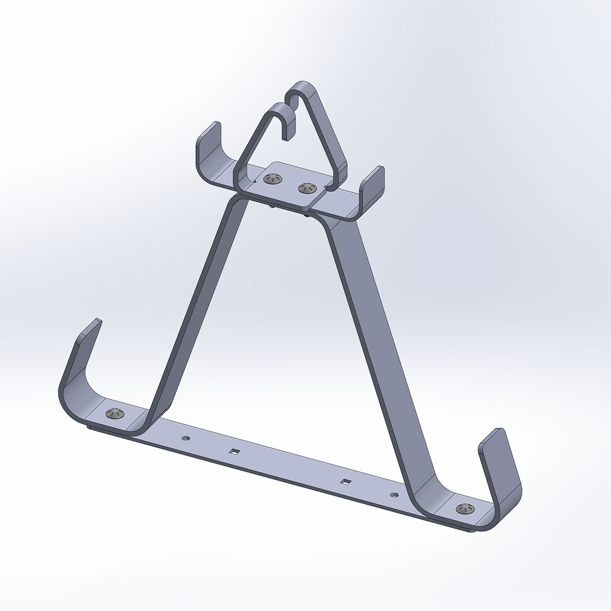 With its unique and thoughtful design, the base CMH-F4 line of CAB management system from GSI International is very easy to install without the use of any tool or force. It simply uses the top double hooks to anchor itself unto the Messenger Cable. Because of the symmetrical design, CMH-F4 will balance itself on the Messenger Cable, allowing the user to simply lift the Low Voltage Communication Cables unto the first level on each side of the Messenger Cable. The second level of CMH-F4 provides another level for cable management, separated by a minimum distance of 12 inches from the top level. cabling and allows for a good amount of separation from the smaller cables. Model CMH-F4 has 4 positions for cable management. With the Communication Cables nestled at the topmost lobes and separated by 12 inches, the user has a choice of one side of the lower lobes for the Motor Power Cables and the other side for PV Power Cable, while maintaining ample distance from each of the cables.